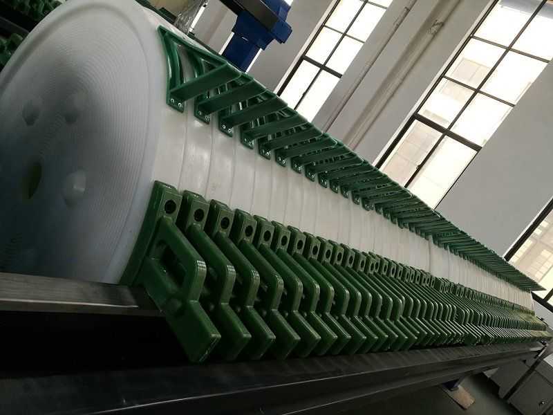 隔膜壓濾機和常規箱式壓濾機的主要區別在于,在濾板的兩側都增加了兩個彈性膜(復合橡膠膜是一個整體式膜。在操作期間,當進料完成時,將高壓流體介質注入膜中,并使整個膜膨脹以過濾濾餅,以進一步使濾餅脫水,這是壓力過濾。在隔膜壓濾機運行期間,液壓系統使用液壓油作為壓力載體來傳遞內部壓力。